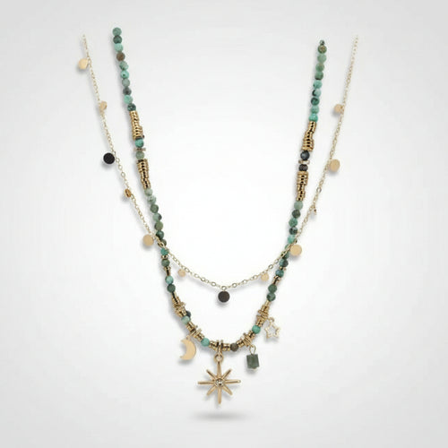 Bohemian Vintage Layered Beaded Sunflower & Pendant Necklace Set